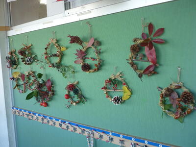 年間を通して5年生の稲づくりにご指導をいただきましたボランティアの方々に、稲わらをつかったリースづくりを教わりました。余すところなく活用する姿勢に、作物を育てることの意義を感じます。