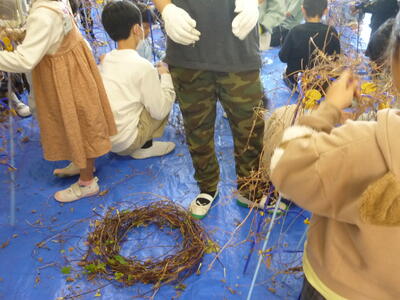 1年生は育てたアサガオのつるを生かしてクリスマスのリースづくりに取り組みます。
