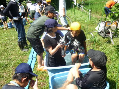 見学を終え、学年集合写真を撮って学校へ帰ります