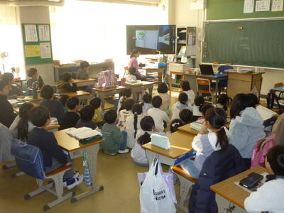 2025年最後の登校、冬休みを迎える会をリモートで行いました。