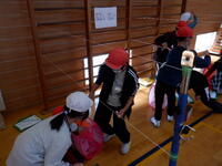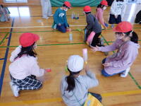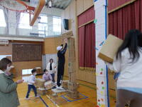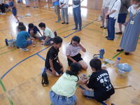 段ボールつみ、バスケットボールの重さクイズ、ペットボトルフリップ、洗濯干し、それぞれのコーナーでペア同士の助け合う姿や、高学年が低学年のペアに優しく教える姿が見られました。