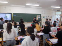 11月26日の3・4校時に、4年生がクボタスピアーズの選手やスタッフの方々をお招きし、