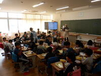 5・6年生を中心に、みんなで協力をして準備をし、楽しく仲良く給食を食べました。