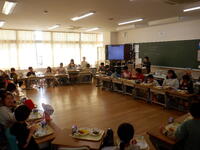 友だち給食とは、ワクワクグループ(全校縦割りグループ)でそれぞれの教室に集まり、