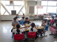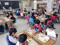 5・6年生を中心に、みんなで協力をして準備をし、楽しく仲良く給食を食べました。
