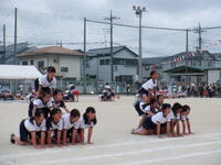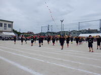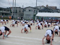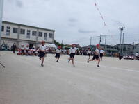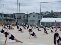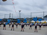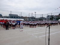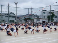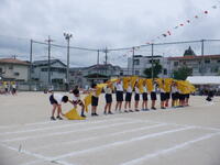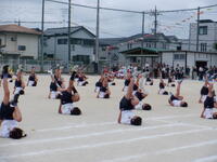 業間休みに校庭で「Choo Choo Train」の曲に合わせて、