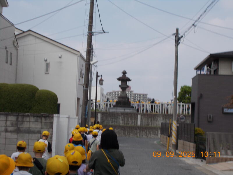 雨の予報でしたが、午前中は雨が降らずに無事町探検に出かけることができました。