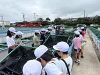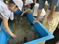 タッチプールで海の生き物を触ったり、栽培漁業についての説明を聞いたりしました。