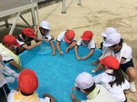 9月9日に1年生が生活科の学習で水遊びをしました。