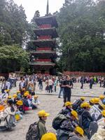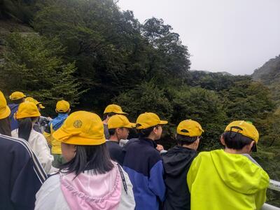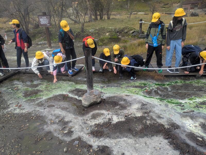 修学旅行ホテルをあとにし、温泉寺を通って源泉見学です。