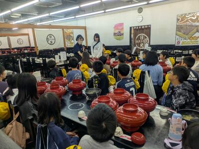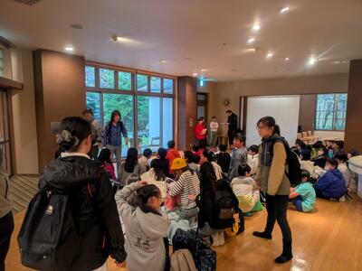 羽生パーキングを出て国分小学校に向かいます。1組は鬼滅の刃、2組は千と千尋の神隠しに夢中です。