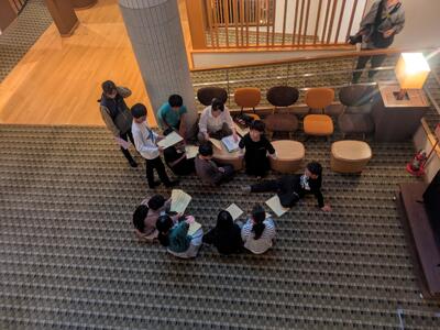 現代産業科学館に到着し、昼食をとった後、グループごとに科学や生き物などに関する体験コーナーを回りました。