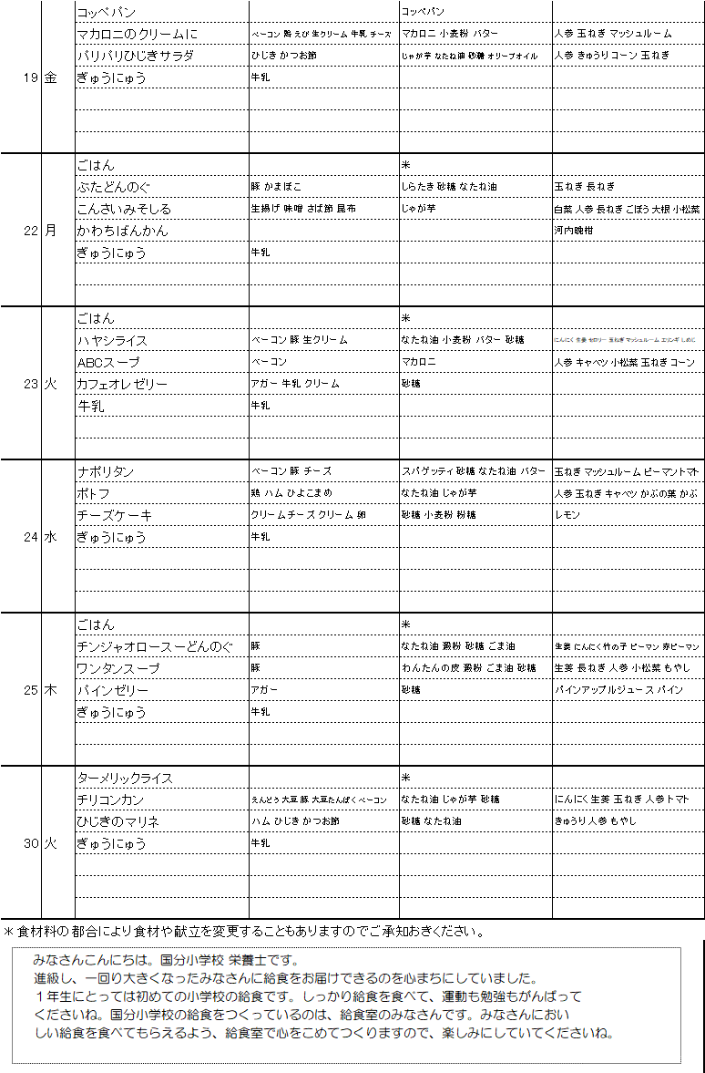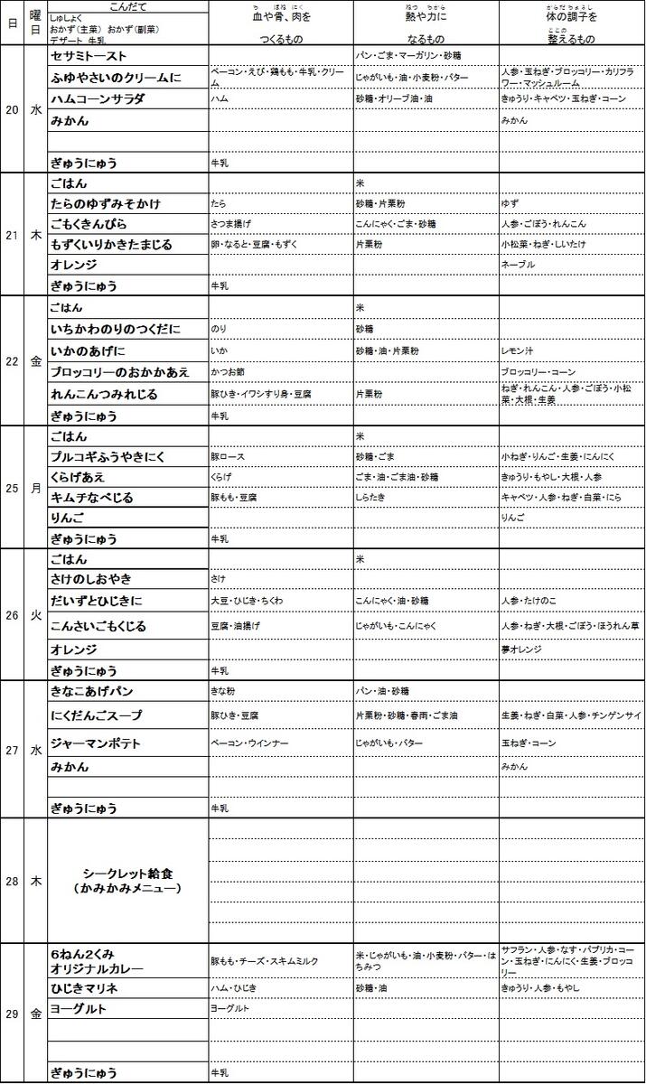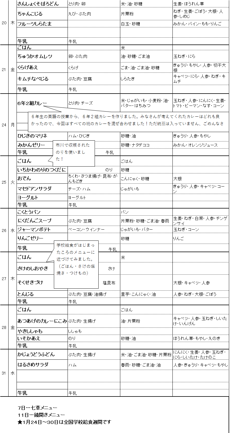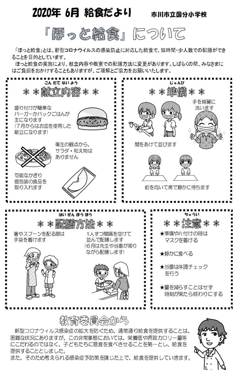 1月7日に発出された緊急事態宣言を受け、給食時に手で直接触れて喫食するメニューを変更・削除いたします。