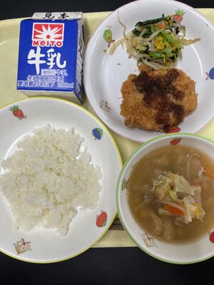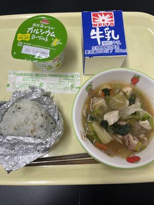 【今日の献立】おにぎり とんじる ヨーグルト 牛乳