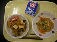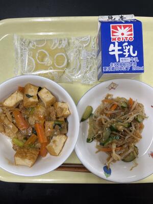 【今日の献立】ごはん かじょうどうふ はるさめサラダ 牛乳