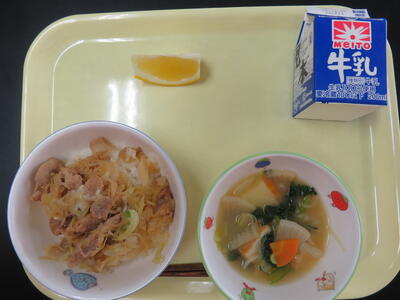 【今日の献立】豚丼 根菜の味噌汁 河内晩柑 牛乳