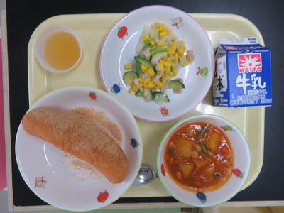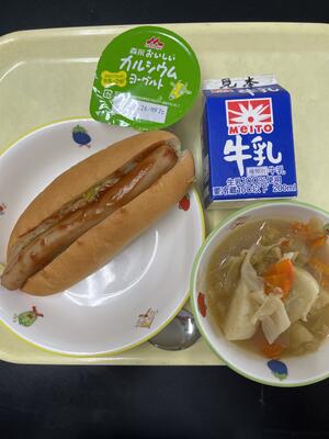 【今日の献立】ホットドッグ ようふうにこみ ヨーグルト 牛乳