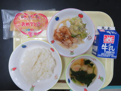 令和4年度の給食最終日です。1年間、おいしい給食をモリモリいっぱい食べました!