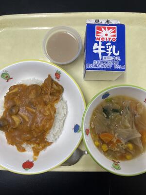 【今日の献立】ハヤシライス ABCスープ カフェオレゼリー 牛乳