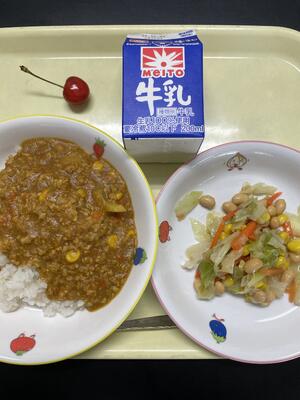 【今日の献立】ターメリックライス チリコンカン ひじきのマリネ 牛乳