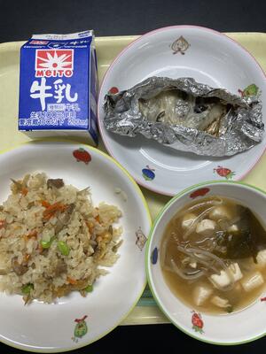 ごはん まつかぜやき からしあえ みずなとわかめのかきたまじる 牛乳