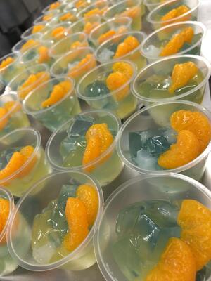 【今日の献立】むぎごはん ホイコーローどんのぐ キムチスープ フルーツいりクラッシュゼリー 牛乳