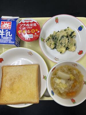 レモンシュガートースト たらこポテト かぶとコーンのスープ ヨーグルト 牛乳