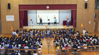 6月22日(木)芸術鑑賞会として、久しぶりに全校で一緒のプログラムを鑑賞しました。「100万回生きた猫」は、絵本で読んだことがある児童がたくさんいましたが、影絵劇は絵本とはまた違う美しさがあり、最後の場面ではどの子も感動していたようです。「影絵教室」では、3人の児童と教員1人が代表に選ばれて、影絵の人形の動かし方などを体験しました。