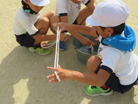 ワクワク活動(縦割り学年交流)でのサツマイモの苗植え