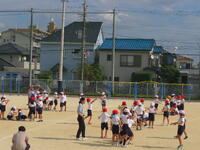 5,6年生が配膳してくれ、教室いっぱいに大きな円をつくって食べました。昼休みにはグループごとに外遊びをしました。