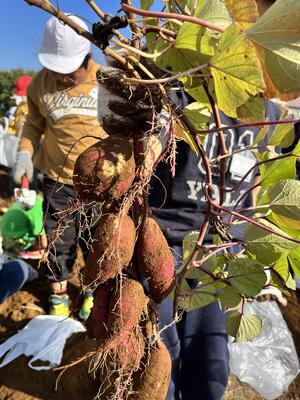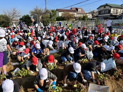 いよいよ芋掘りスタート!全校一斉に行うのは4年ぶりです。