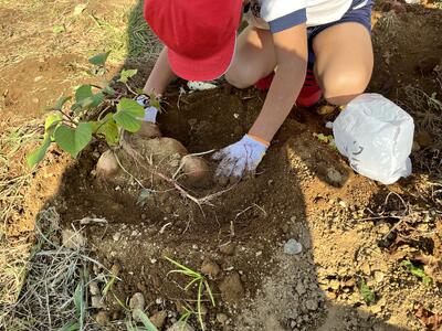 前々日は6年生が蔓きりをし、前日には苗植えからお世話になっている地域の方に上手な掘り方をレクチャーしていただきました。