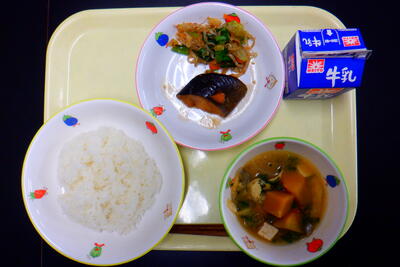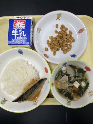 【今日の献立】ごはん さばのみそに けんちんじる カリカリだいず 牛乳