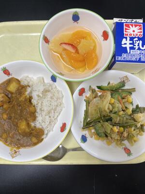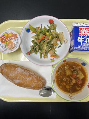 【今日の献立】ドライカレー わふうサラダ ミニゼリー 牛乳