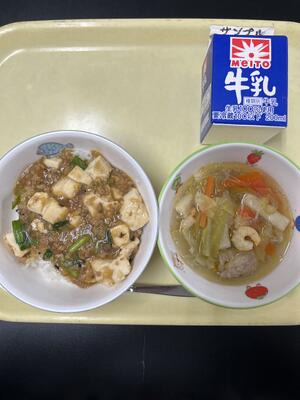 【今日の献立】マーボーどうふどん タイピーエン 牛乳