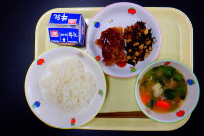 【今日の献立】ごはん にくじゃが いそかあえ とりにくのみそてりやき 牛乳