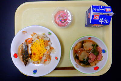 【今日の献立】ごはん さけのしおやき そくせきづけ とんじる 牛乳