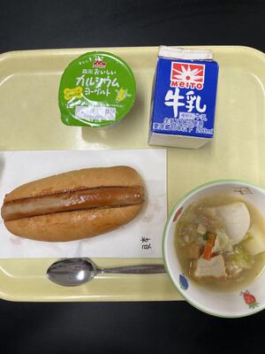 【今日の献立】ホットドッグ ようふうにこみ ヨーグルト 牛乳