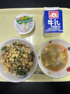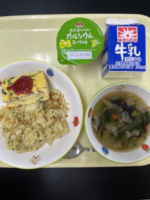 【今日の献立】キムチごはん ちゅうかオムレツ きりぼしだいこんのちゅうかスープ ヨーグルト 牛乳