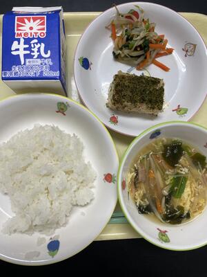 ごはん まつかぜやき からしあえ みずなとわかめのかきたまじる 牛乳