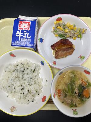 ごはん・牛乳・さんが焼き・ひじきの梅煮・千葉県産野菜のみそ汁