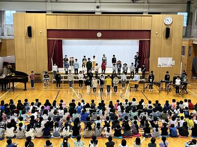 朝会 栄養士さんのお話「いただきます」「ごちそうさま」について。