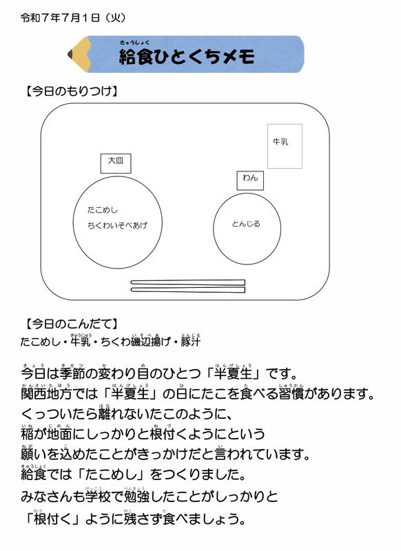 7月1日 今日の給食【半夏生】