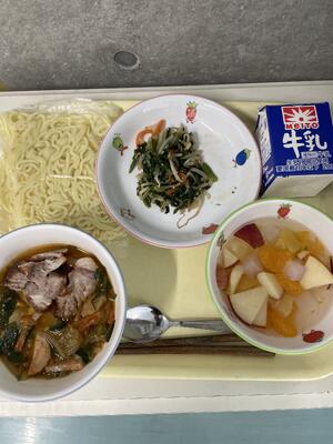【今日の献立】みそラーメン チャーシュー ナムル サイダーポンチ 牛乳