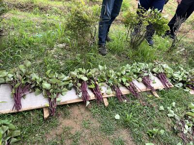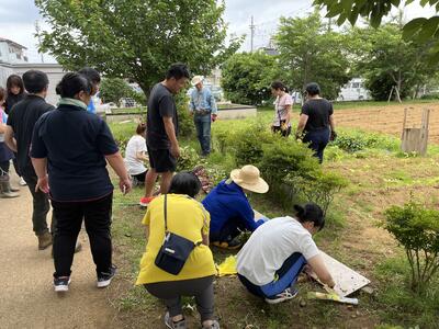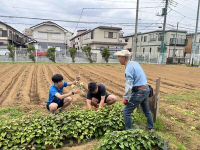 ワクワク活動で行う、さつまいもの苗植えにむけて、放課後に先生方が苗の刈り取りをしました。