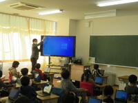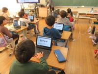 当日は、地域の教材業者の方も支援者として参加し、主に「ミライシード」の使い方を体験しました。1年生は、すぐに操作に慣れて、ドリル学習などに挑戦していました。
