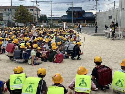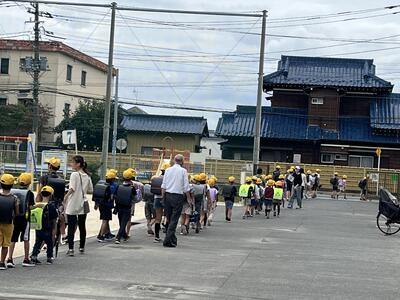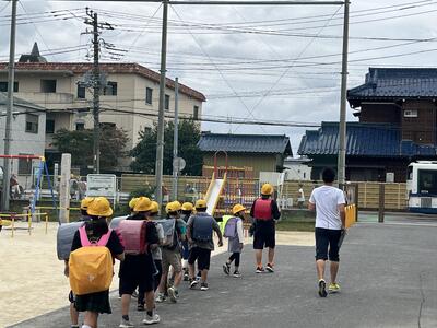 9月30日(月)全校集団下校訓練を行いました。緊急時を想定して、同じ通学路コースでまとまり、職員の引率のもと安全確認しながら下校しました。