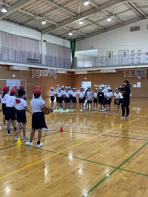 5年生は、バスケットボール教室を行いました。千葉ジェッツからコーチをお招きし、楽しくバスケットボールを教えていただきました。