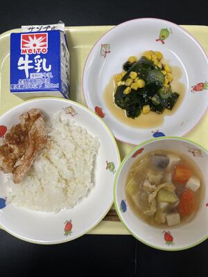 【今日の献立】ごはん ささみのフライ ひじきのにもの かきたまじる 牛乳