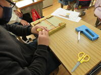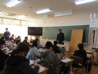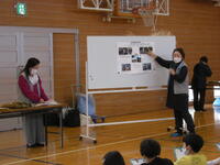 6年生のキャリア教育に、畳職人さんに来ていただいました。畳についてのお話や一人前の職人になるまでの話を聞いた後にミニ畳づくりを体験しました。